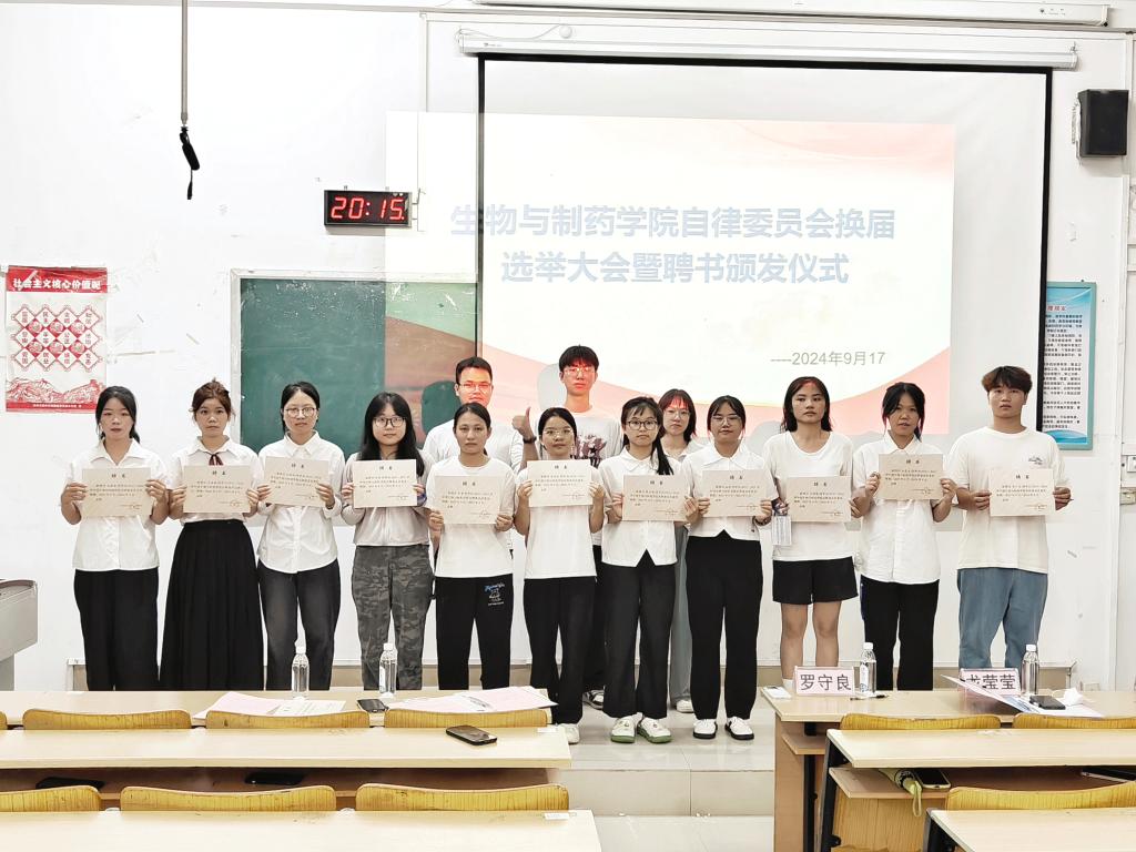 9月17日晚上,伟德国际VICTOR1946于我校东校区博学1-101教室举行自律委员会换届选举大会暨聘书颁发仪式。我院辅导员罗守良、主席团部分成员以及自律委员会全体会干参加本次会议。