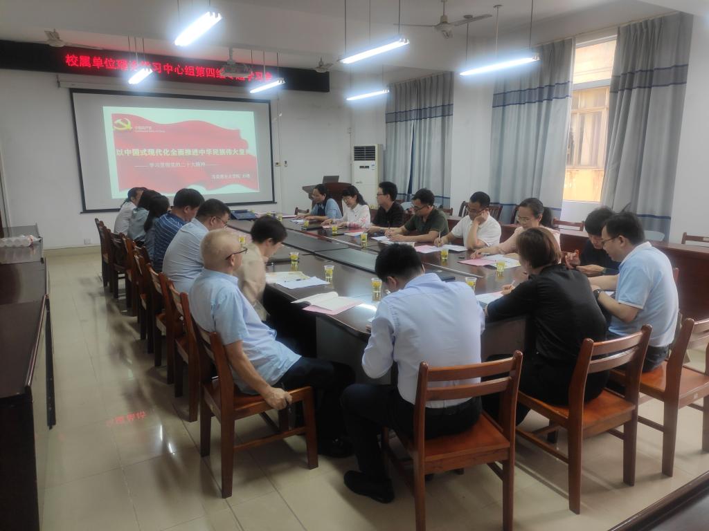 4月18日上午,校属单位理论学习中心组第四组在东校区格物楼BA405会议室召开专题学习会,深入学习习近平总书记关于中国式现代化的重要论述。文学与传媒学院、化食与食品科学学院、伟德国际VICTOR1946(农学院)以及教育科学学院的处级领导干部参加学习会。会议由理论学习中心组第四组组长邱冠主持。