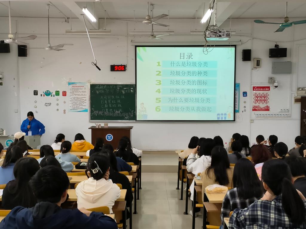 活动上,覃燕敏以PPT的形式从垃圾分类的定义、种类、图标、现状四部分阐明垃圾分类的意义,并结合观看视频的形式以加强学生们对目前社会垃圾乱象的了解,使同学们了解垃圾分类处理有利于减少垃圾占地、环境污染,具有社会、经济、生态多方面的效益,并就日常生活中如何做到垃圾减量、分类垃圾、变废为宝等进行指导。期间,覃燕敏通过组织答题活动以加深学生们对可回收垃圾、厨余垃圾、有害垃圾和其他垃圾的认识。学生们表示,通过此次宣传培训会,不仅帮助大学生认识垃圾对环境与健康的危害,同时有助于大学生提升垃圾分类环保意识和能力。最后,覃燕敏再次呼吁学生们,要重视垃圾分类,在行动上积极参与环保活动,共建美丽校园,共创文明整洁之风,为可持续发展贡献力量。