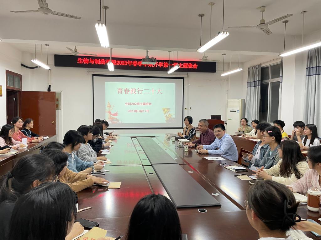 3月17日晚,伟德国际VICTOR1946生科202班于我校东校区格物楼BA405会议室组织开展“青春践行二十大”开学第一课主题班会。我校财务处处长陈旭健、我院党委副书记兼副院长蒋德旗、团委书记朱惠以及生科202班班主任、全体学生参加班会。