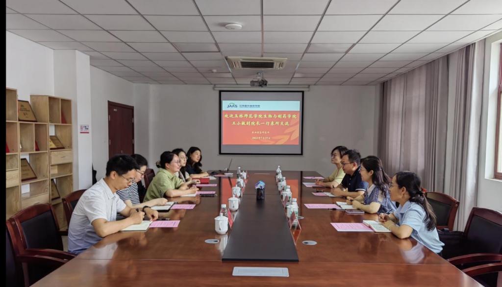 7月19日上午,王小敏一行在江苏省农业科学院农业信息研究所调研。江苏省农业科学院农业信息研究所副所长、党支部副书记王澎等参加座谈会。