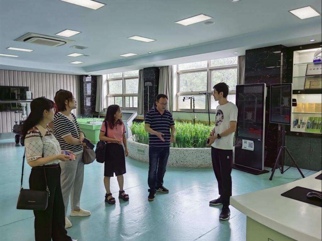 王小敏介绍了我院的整体情况以及智慧农业专业建设的迫切需求。王澎就农业信息研究所的基本情况、研究方向和成果应用等进行了介绍,重点介绍了智慧农业创新团队建设、发展历程及创新应用情况。随后,调研人员参观了种质资源平台、农业大数据中心、智慧农业实验楼、农业信息馆。