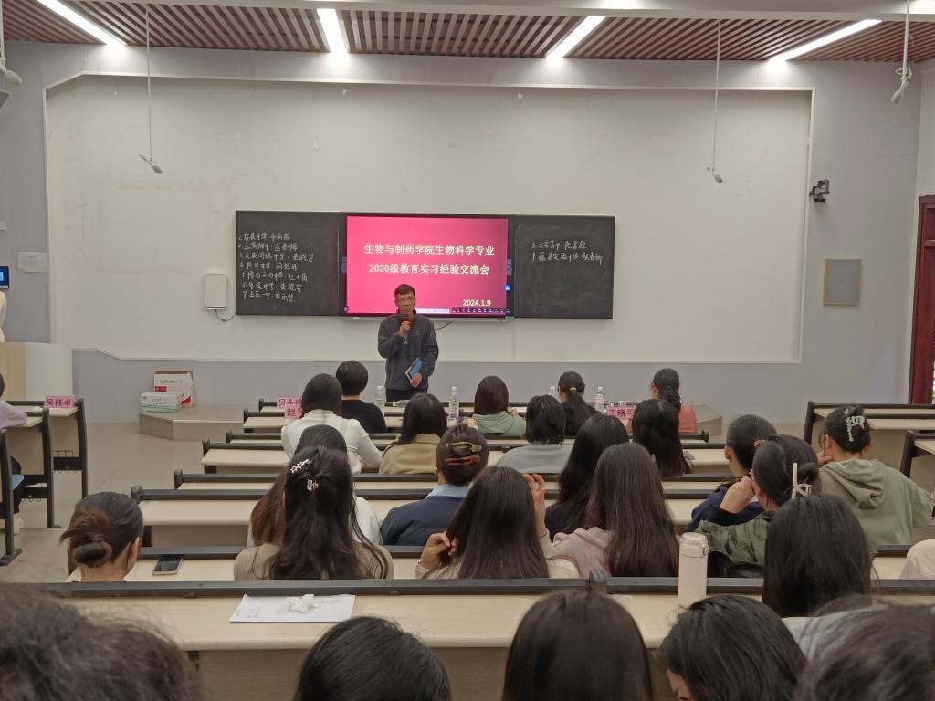 1月9日下午,我院生物科学专业于我校东校区格物楼物理阶梯教室召开2020级教育实习经验交流会,我院院长贝永建、各实习组指导教师以及2020级生物科学专业全体同学参与本次会议,会议由吴桂卓主持。