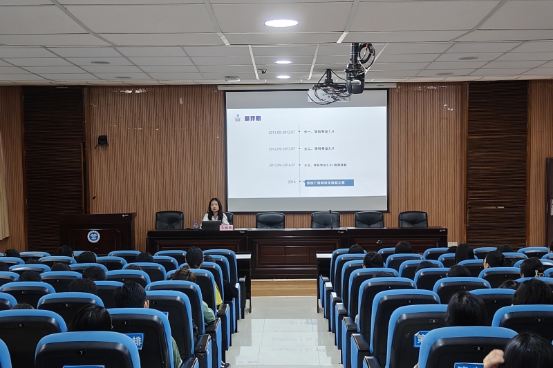 4月18日上午,我院在我校东校区博士论坛举办优秀校友经验分享会,邀请我院优秀毕业生、现任柳州市航鹰中学教务主任、生物骨干教师韦精格主讲,生物科学专业部分学生代表参加会议。