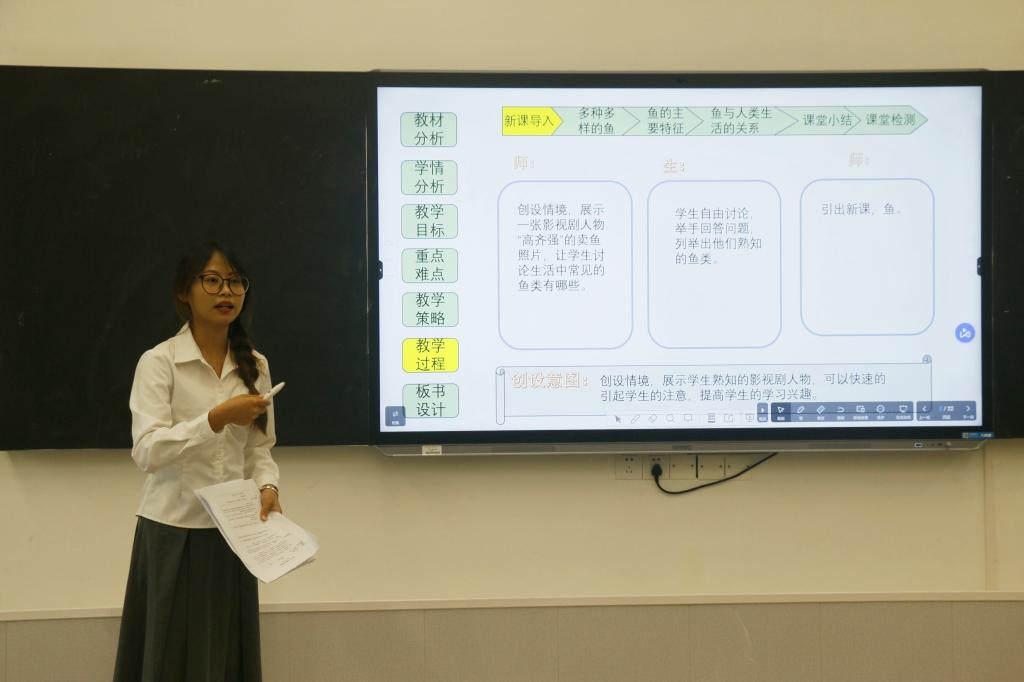 此次比赛分为高中组与初中组,包含教学设计、说课、模拟讲课三个环节。贝学军表示,此次比赛搭建了互相交流、共同进步的平台,他鼓励选手们积极展现自我,争创佳绩,同时希望观众们认真学习相关经验,不断提升自身教学能力。比赛期间,选手们充分挖掘教材内容,精心设计讲课流程,将被动传授知识转变为问题驱动式引导,将小组合作探究结合信息技术等新形式融入到知识的传授中,用图片、视频、案例、活动创设情节,展现出我院师范生过硬的教学本领与卓越的综合素质。