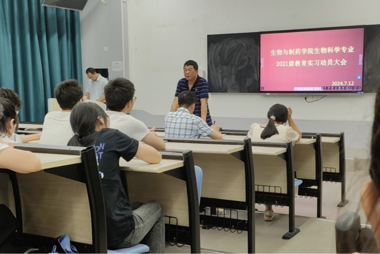 为检验生物科学专业学生校内试讲训练成果,切实提高我院师范生的教学能力,2024年7月12日,我院于我校东校区育师楼和格物楼开展2021级生物科学专业校内试讲考核与教育实习动员大会。我院副院长贝学军,校内指导教师以及2021级生物科学专业全体学生参加此次考核和动员大会。