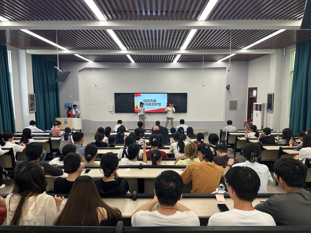10月15日下午,我院于我校东校区格物楼物理阶梯教室举行第一届师范生文化节开幕式。此次开幕式由王皓及王斐扬主持,我院副院长贝学军、系主任张克处、辅导员罗守良、教师代表赵英、吴桂卓及我院部分学生参加。