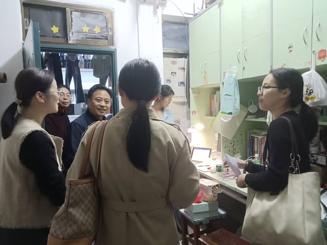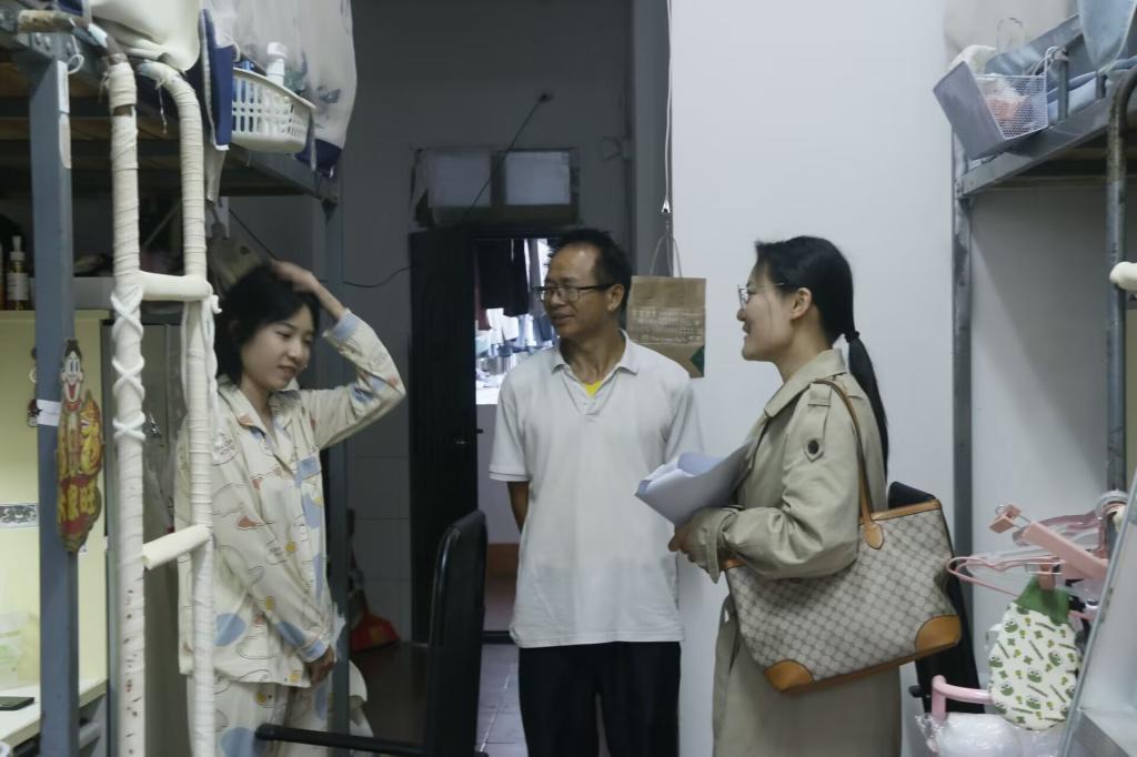 活动中,学院领导李国庆一行深入学生宿舍,与学生们进行了亲切的交谈。他们详细询问了学生的近期安排、生活情况以及学习状况,并表达了学院对学生的深切关怀。李国庆强调,宿舍是学生们日常生活和学习的重要场所,安全和卫生保洁工作至关重要。他提醒学生们要严格遵守宿舍规章制度,禁止违规使用电器,提高防火防盗意识,共同维护宿舍的安全稳定。
