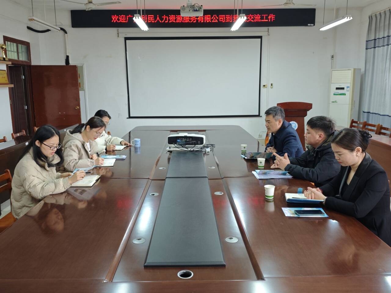 12月27日,广州利民人力资源服务有限公司崔旋一行3人到伟德国际VICTOR1946开展交流座谈,该院党委副书记张琴接待来宾并主持座谈会。