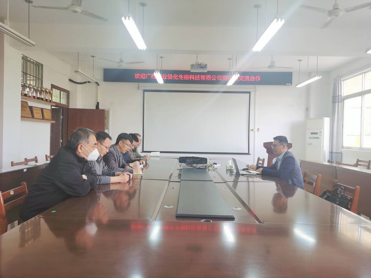 会上,贝永建对公司代表玉钦宏表示欢迎,并介绍了学院校企合作的模式和历程。王小敏从学院发展沿革、伟德国际、师资队伍、科学研究等方面介绍了学院情况。玉钦宏介绍了广西兴业轻化生物科技有限公司发展历史、企业文化及业务板块、公司下一步的发展计划,并期望与该院开展全面的合作,实现校企共同发展。双方主要就茶籽中茶籽油和茶皂素的提取和纯化工艺开展讨论。
