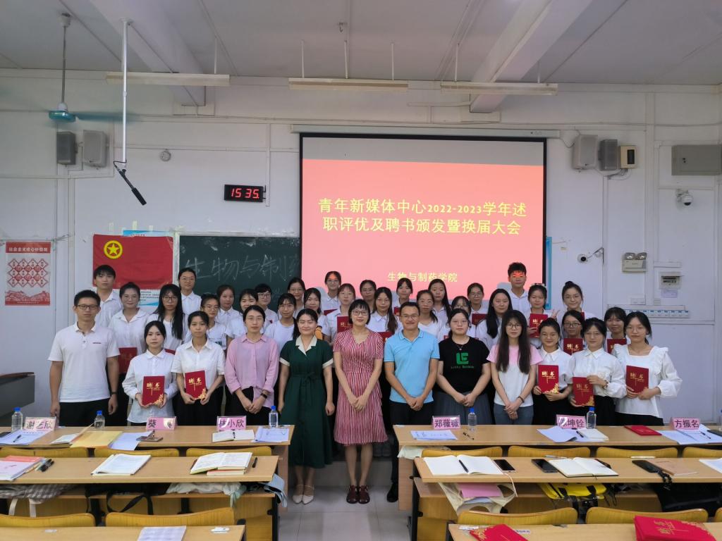 9月12日下午,我院于我校东校区厚德楼3-104教室召开2022-2023学年青年新媒体中心述职评优及聘书颁发暨换届大会,本次大会由何漳和谢沛桃主持,我院全体辅导员、学生会团委会主席团成员及青年新媒体中心全体成员参加。