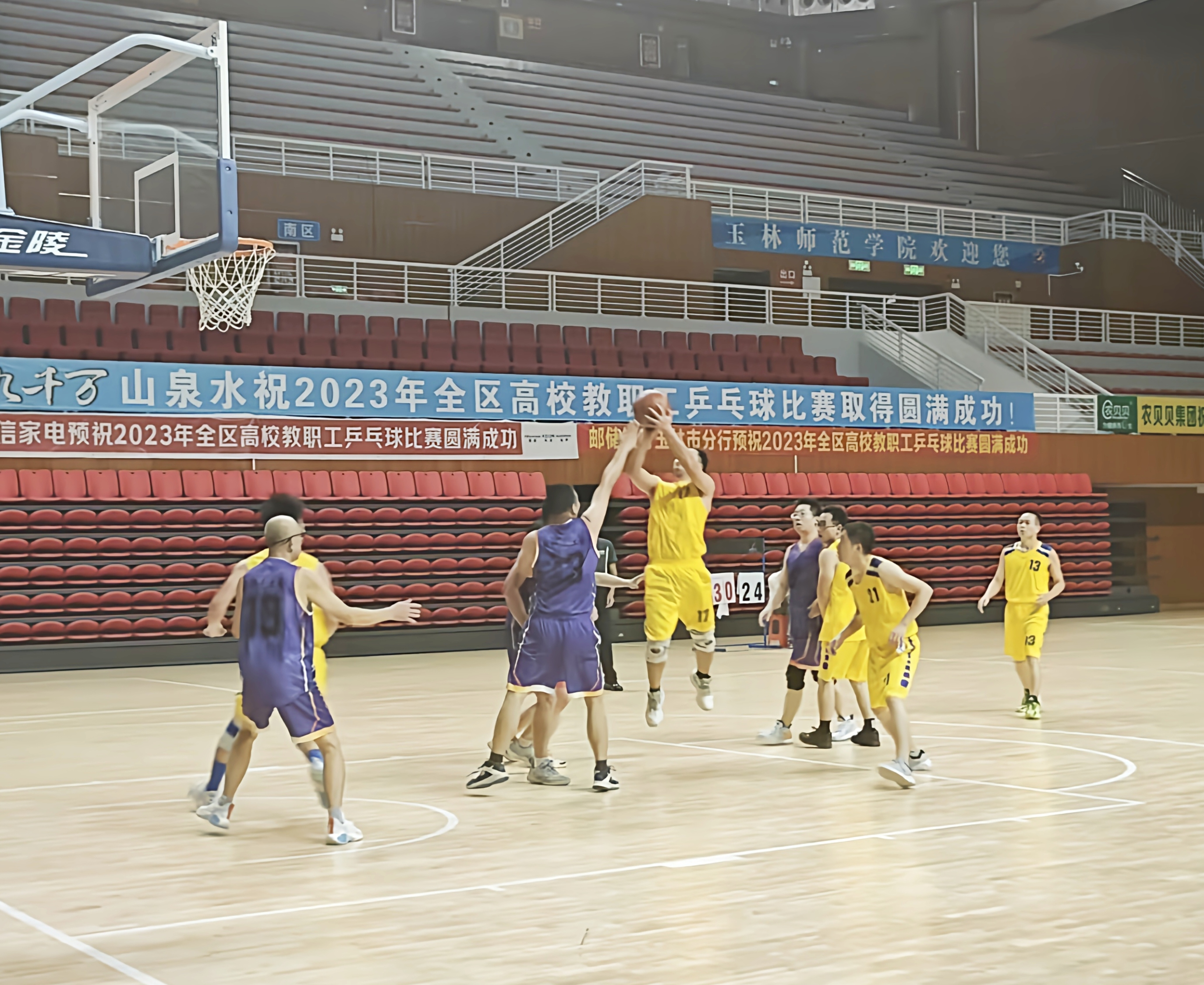 4月24日-5月7日,我院分别与第三分工会、第五分工会和美术与设计学院于我校东校区新体育馆进行教职工篮球比赛。