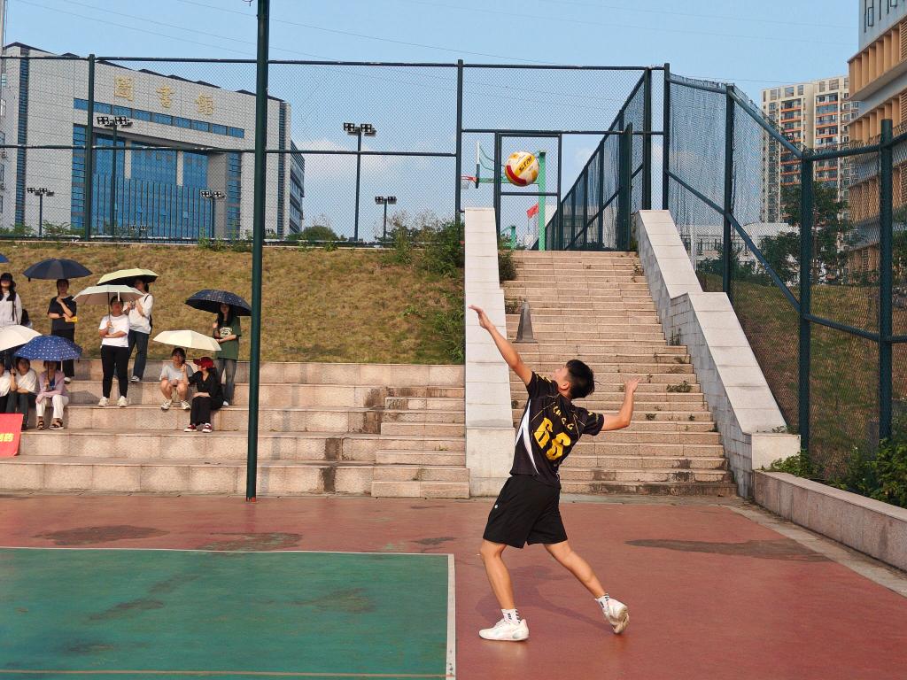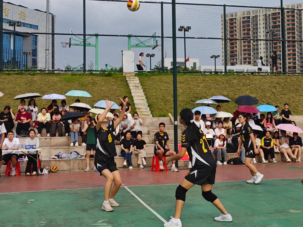 16日下午,我院与外国语学院双方球员为比赛做准备,进行拍球接球练习。比赛正式开始,双方球员腾空而起,积极发球、垫球、拦球,两队互不相让、不甘示弱,全力挽救每一个球。球员间配合默契,彼此信任,不断地沟通和交流让每一次的接球传球。一旁的啦啦队也毫不懈怠,为各自学院的球队加油呐喊。短暂的中场休息后,双方进行场地交换,我院球队保持状态,精准接球,持续猛攻,最终以25:15的比分赢得本场比赛的胜利。