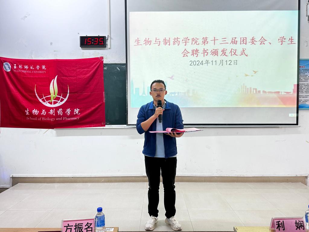 11月12日下午,伟德国际VICTOR1946于我校东校区博学楼1101教室举行第十三届团委会、学生会聘书颁发仪式,本次仪式由于涵、张颖主持,我院团委书记方振名、第十四届团委会、学生会全体学生干部参加。