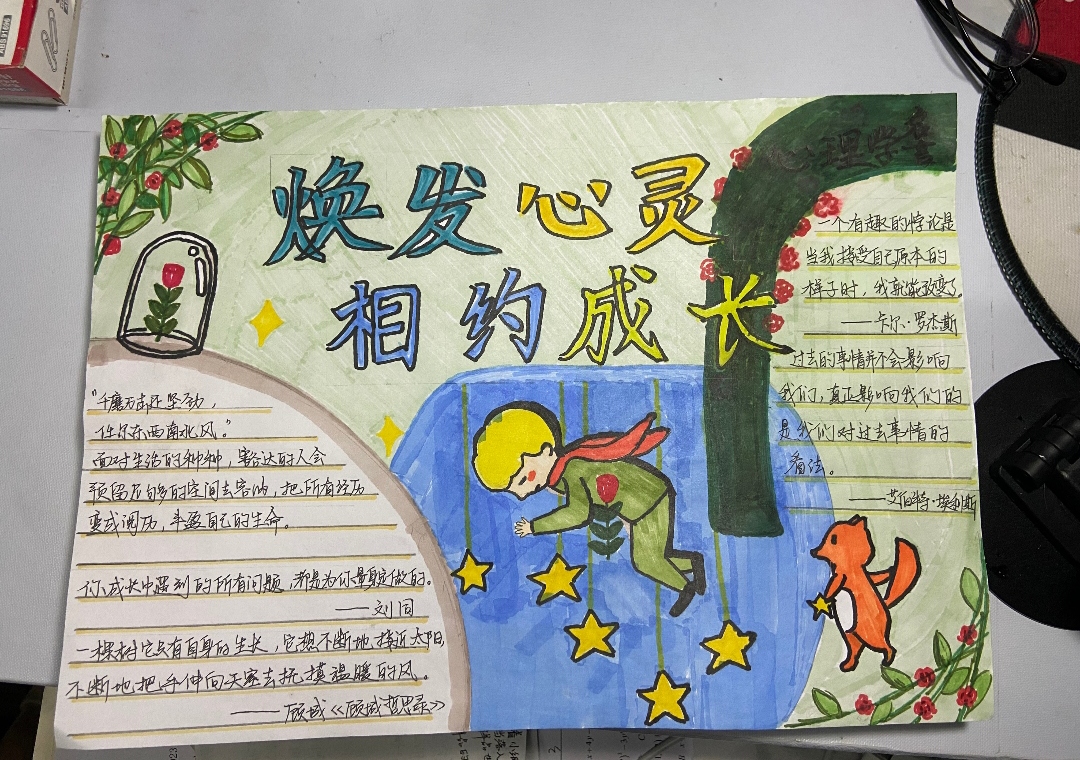 此次手抄报活动旨在通过创作的形式,引导学生关注心理健康,积极表达内心感受,提升自我认知与情绪管理能力。同学们围绕心理健康主题,结合个人经历和感悟,精心设计并制作了一幅幅富有创意和深意的手抄报作品。
