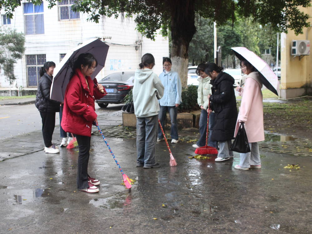 仪式上,章烨雯指出此次活动目的在于深入学习贯彻党的二十大精神和习近平总书记对深入开展学雷锋活动的重要指示精神。她希望新学期各位党员同志深刻把握雷锋精神的时代内涵,传承发扬雷锋同志的无私奉献精神,把时代重任放在心上,扛在肩上,争做时代先锋,使雷锋精神薪火相传。随后,各支部党员分别前往自习室、格物楼周围等区域开展“传承雷锋精神,争做党员先锋”清洁环境活动。尽管天气欠佳,但党员们依旧不怠。经过党员们的不懈努力,打扫区域焕然一新,干净整洁,充分展现了党员良好的精神面貌,彰显了新时代共产党人的奉献精神。