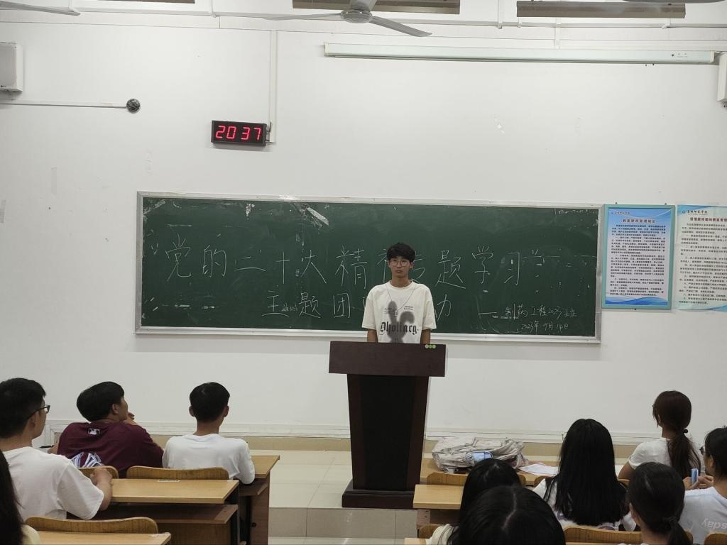 生制21班团支书梁萱渝以“党的二十大精神专题学习”为主题,带领同学们回看了党的二十大开幕会,并学习了党的二十大报告中第五部分“实施科教兴国战略,强化现代化建设人才支撑”。随后,同学们纷纷表示要牢记习近平总书记嘱托,以党的二十大精神为指引,将个人成长、理想与党和国家的发展融为一体,自觉担当伟大时代赋予的责任,让青春在全面建设社会主义现代化国家的火热实践中绽放绚丽之花。